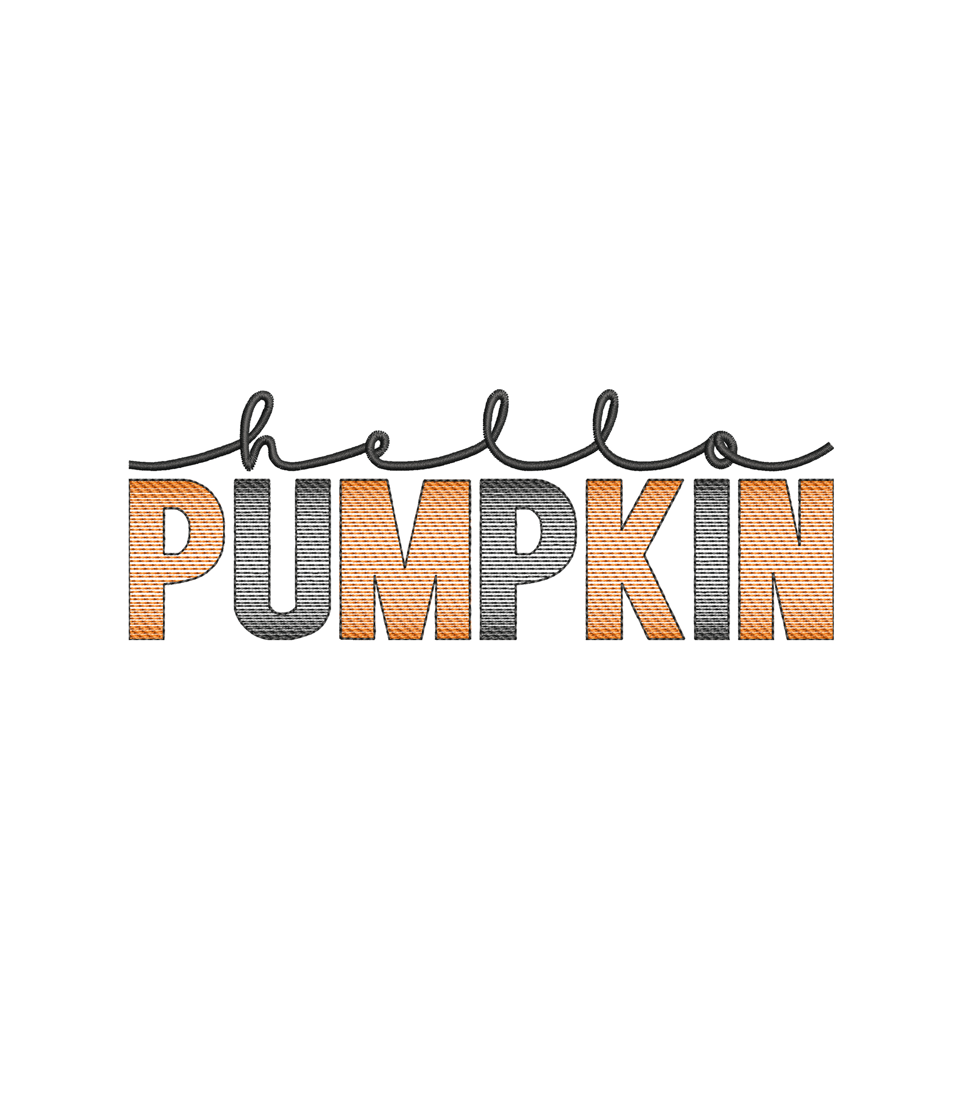 This "HELLO PUMPKIN" design features the words "HELLO PUMPKIN" with a cursive "hello" above the word "PUMPKIN" in a faded pumpkin lettering design. This will be applied center chest with large dimensions of 7.75 inches x 2.73 inches. This design will be placed on your color choice of Jerzees NuBlend® Fleece Pullover.