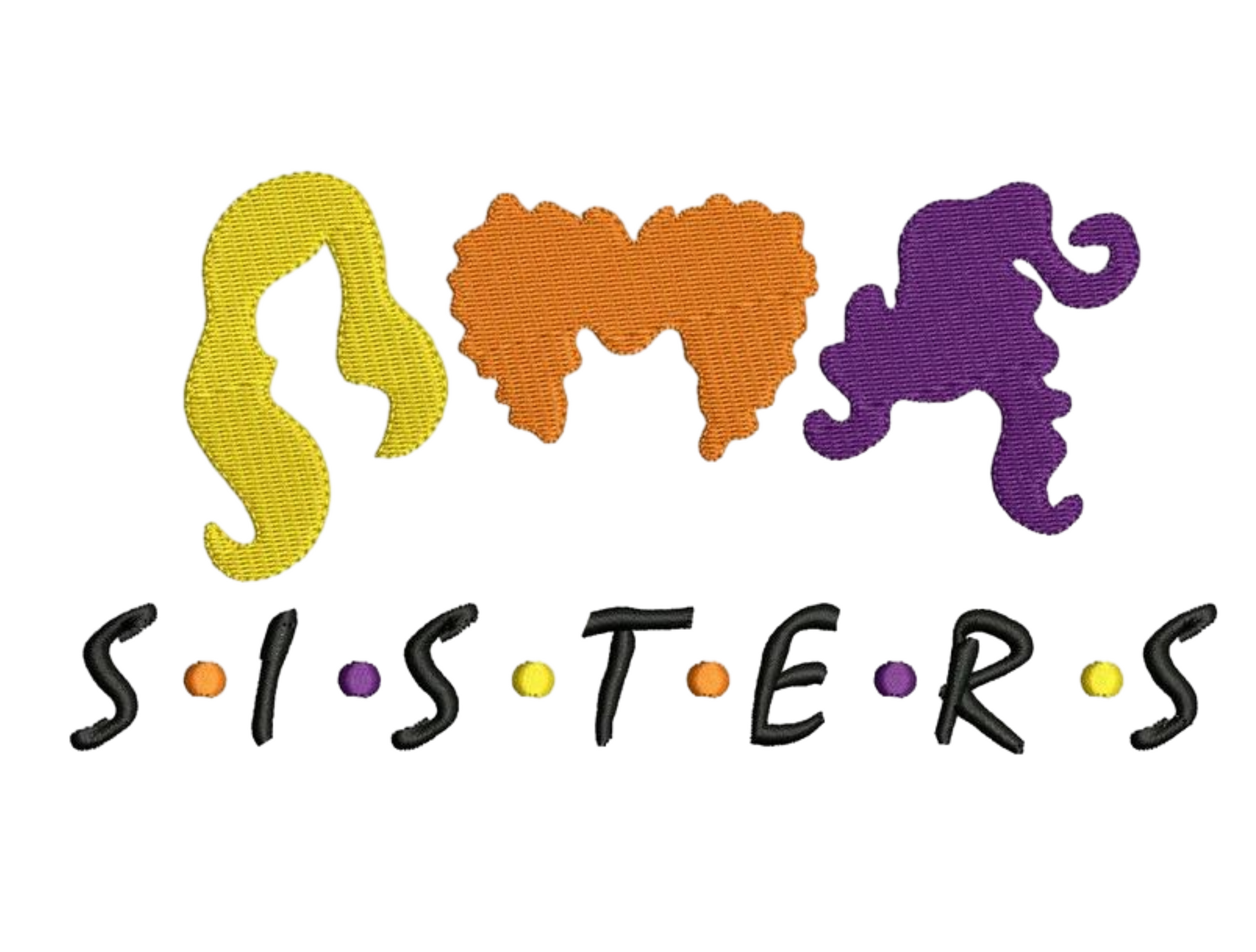 This "Sisters Witch Friends" design features 3 colored hair witches with the words "SISTERS" underneath and the design will be applied center chest with large dimensions of 9.06 inches x 7.46 inches. This design will be placed on your color choice of Jerzees NuBlend® Fleece Pullover.